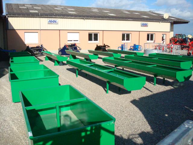 Auge et bac à eau sur mesure ; égale ou inégale ; possibilité d'ouverture de 0,40 à 1,00 m ; galvanisé ou grenaillé et finition peinture polyuréthanne.